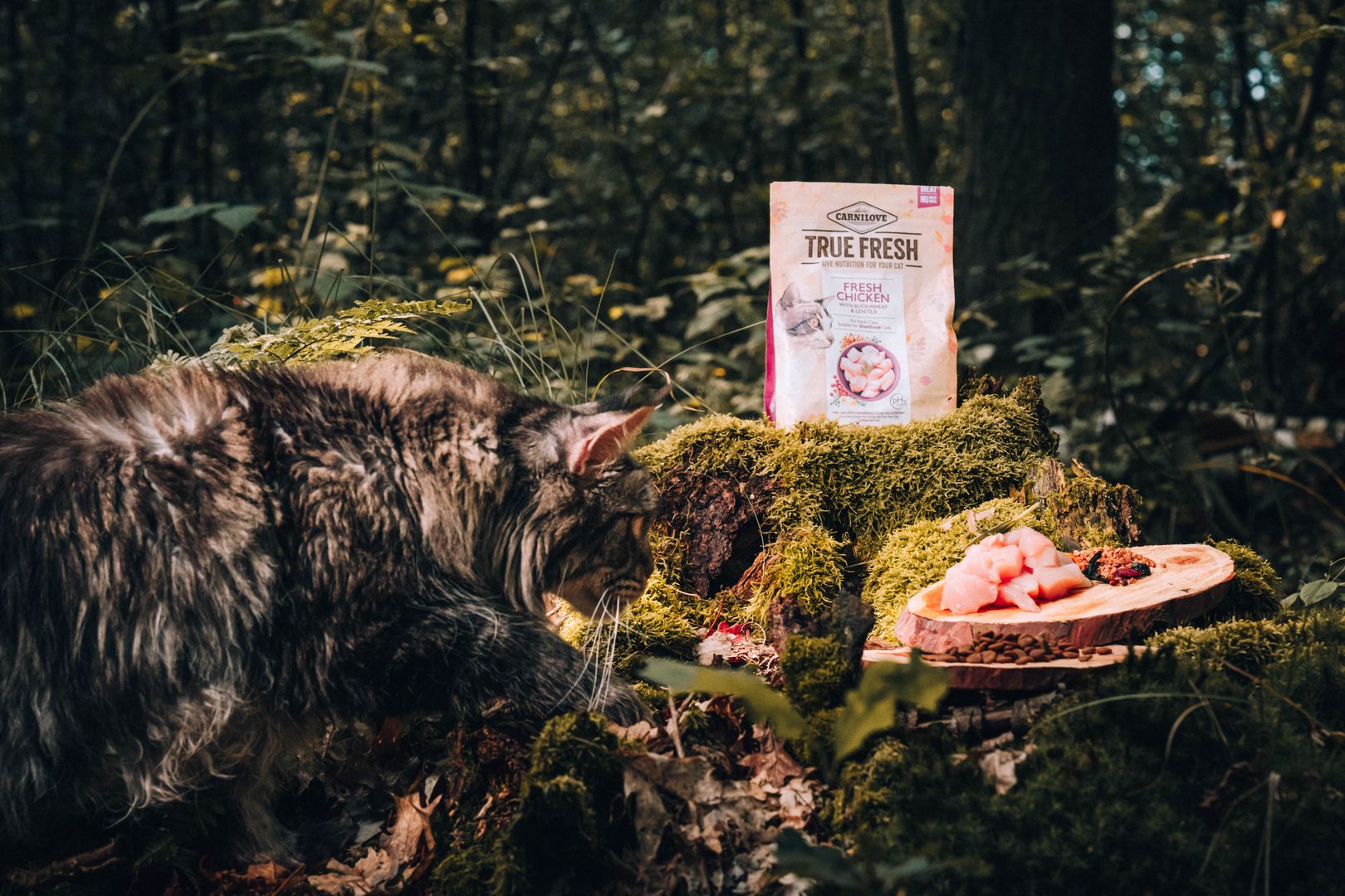 Taze tavuk eti (%70), bezelye proteini, kırmızı mercimek, karabuğday (greçka, %4), tavuk yağı, somon yağı (%1), sodyum klorür, potasyum klorür, kurutulmuş deniz yosunu (%0,5), su mercimeği proteini (%0,5), bezelye unu, kurutulmuş yer iğdesi (%0,2), kurutulmuş zencefil kökü (%0,1), kurutulmuş yaban mersini (%0,1), kurutulmuş biberiye (%0,1), kurutulmuş kızılcık (%0,1), kurutulmuş kekik (%0,1), bira mayası (mannan-oligosakkarit kaynağı, %0,015), hindiba kökü (frukto-oligosakkarit kaynağı, %0,015), Mojave yuka (%0,008).